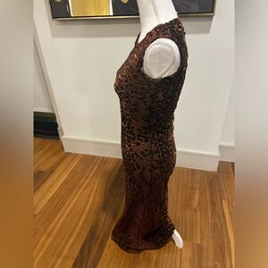 Jean Paul Gaultier brown and black leopard print dress, mesh, but this is fully lined and not see-through, the leopard detail is almost raised with a very, very slight metallic sheen to it, excellent condition, size medium