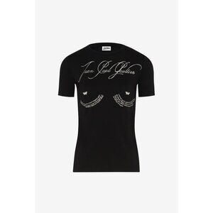 Black jersey T-shirt with “Tattoo Poem” print and Jean Paul Gaultier logo detail