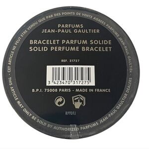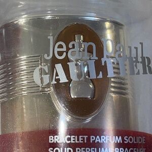 The center medallion featuring the JPG CLASSIQUE bust shape opens to reveal JPG CLASSIQUE solid perfume. New in sealed package Jean Paul Gaultier Solid Perfume Bracelet. The scent has been described as Orange Blossom, Star Anise, Rose, Mandarin Orange, Pear, Bergamot, Ginger, Orchid, Iris, Tuberose, Plum, Vanilla, Amber. Container has not been opened on bracelet, but has been by the soap, the soap itself if manufacturer sealed. The original plastic strip is still over the solid perfume and the paper insert is still inside the cuff. Made in France. The bracelet is approximately 2.75" L x 2" D x 2.25" H. The bracelet does appear to have some tarnish on it but can be cleaned with a polishing cloth. Please see all gallery photos for details. I'd be happy to answer any questions you may have. We are a smoke free, pet friendly home. Have a great day!