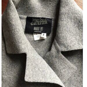 Superb Jean Paul Gaultier Maille coat, in unlined wool. Gray color with black buttons. Military style. Two pockets. Double-breasted. Size S, but being oversized it can also be suitable for a M, L because the length of the sleeves is adjustable. It was worn for a photo shoot after which it remained in the wardrobe waiting for a new fashion addicted owner. Rare item. This coat has been authenticated by the team at Vestiaire Collective.