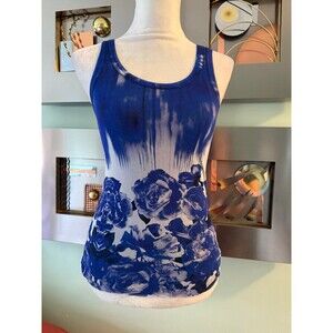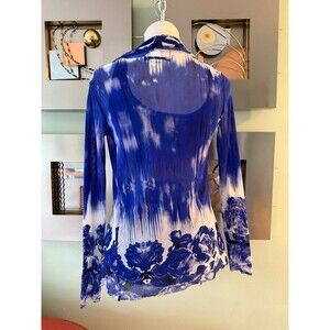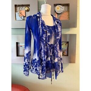 Excellent condition Jean Paul Gaultier tank top and gauze cardigan, blue floral print. No signs of wear. Size small