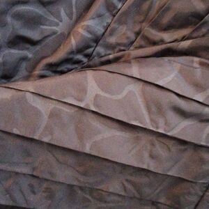 Unique and beautiful. This fabric is crisp and textured, with an abstract floral embossed on it. Then it is sculpted with tucks into a fitted bodice. Adhesive strips to hold in place. Side supports. Fully lined. Back zip. At the waist two tucked panels wrap around and cross in front. Size 11 measures 35 at chest, 30 at waist, 40 at hips, 28 long from under arm to hem. 36 at bottom hem for a pencil shape. A Designer inspired dress you'll love.