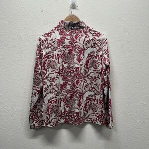 Jean Pierre Klifa Paris Floral Red Pattern 1/4 Zip Pullover Long Sleeve Top Size