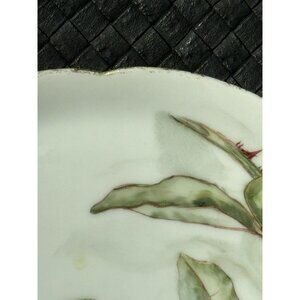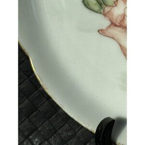 Jean Pouyat Limoges 10 1/2” cake plate. JP over L mark white-ware imported into the US and painted by Chinese amateur painters. Pattern is thorny pink roses. The condition is very good, there are no chips, cracks or stains but there is some color loss on the gold edging and handles. Please see all photos as they are part of the description.