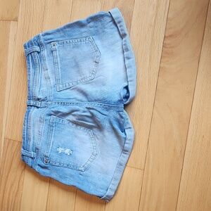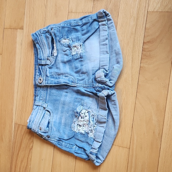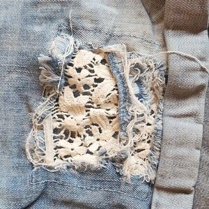 ripped jean short with floral lace