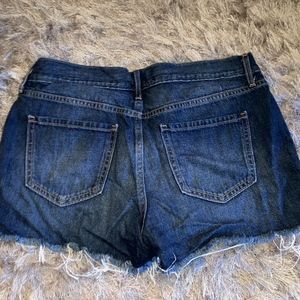 lightly distressed jean shorts, fit nicely, worn a few times but in great conditon, 4 functionally pockets, and zipper