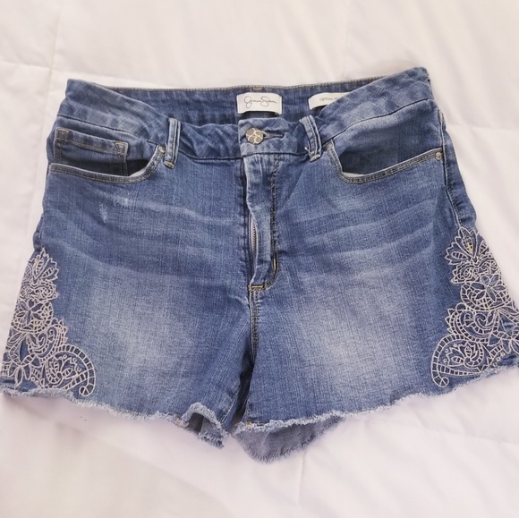 High rise jean shorts with embroidery on sides