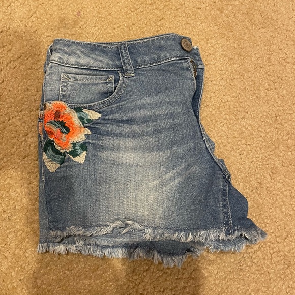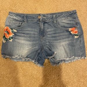 These jeans are embroidered with a fancy flower design to spice up regular jean shorts!