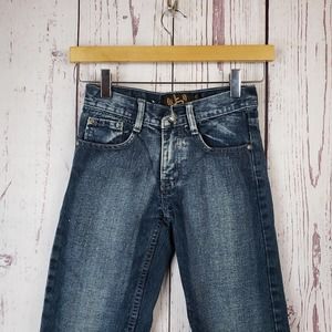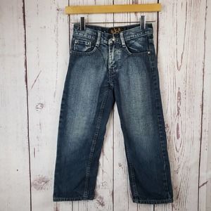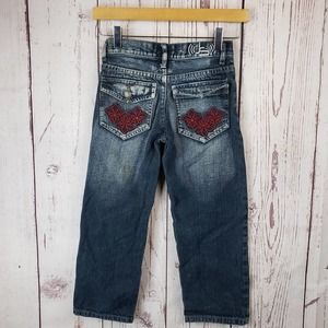 Jean Station Girls Size 7 Floral Straight Leg Medium Wash Denim Blue