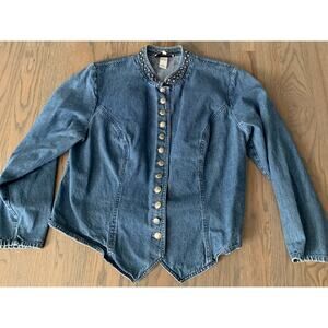 Jean Top, by Stonebridge, Blue, Size 20W, Many Buttons, Mandarin Collar, Western
