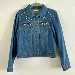 Never worn Untamed Petals “Mrs.” Jean jacket in medium. I bought this for my wedding in North Carolina and didn’t end up needing to wear due to mild weather. All pearls are intact on this nicely fitted jean jacket. I bought this one over other options because you could wear it outside of a wedding setting. I loved the Mrs. flip option on the collar