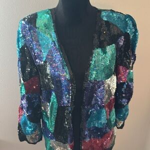 Multicolor sequined silk jacket