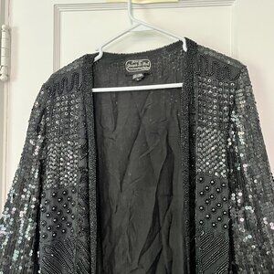 Jean for Joseph Le Bon vintage 100% silk black sequin beaded jacket size large