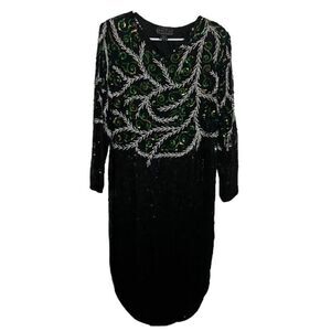 Jean for Joseph Le Bon Silk Sequin Beaded Dress Long Sleeve Evening Wear Vtg L