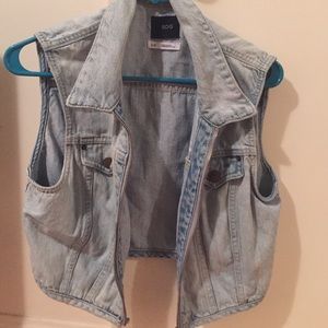 This sleeveless zip up jean jacket is perfect with any dress or long sleeve