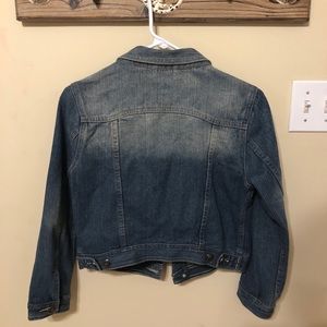 medium wash jean jacket. cropped to below rib cage.