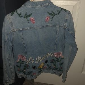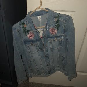 Light wash jean jacket, unworn with roses and bumblebees