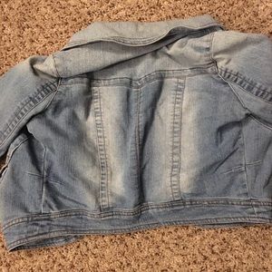 Denim jacket longer in front and goes shorter in the back great condition loved this jacket but no longer fits ! Bundle and save on 3+ items !