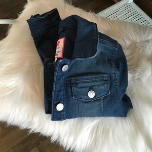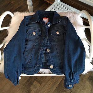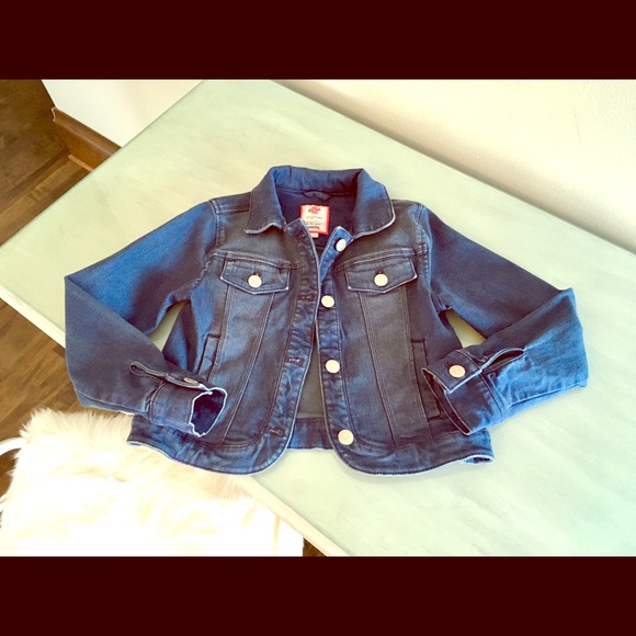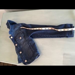 Girls stretchy dark denim jean jacket, excellent condition, almost new. Stylish “Must have” item for every girl.