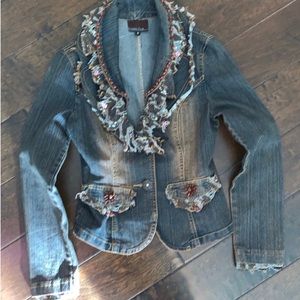 Love this detailed Jean jacket. Dresses up an outfit for a night on the town or perfect for the fair or country concert.