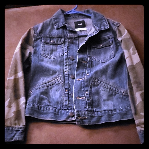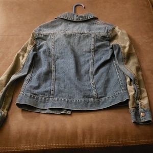 Jean jacket with camoflo arms. Very cute worn 1 time.
