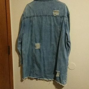 Oversized Distressed long jean jacket. Perfect condition. Size L but it can fit up to a size 1x.