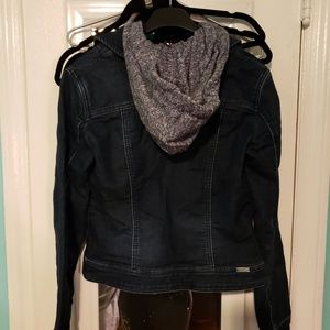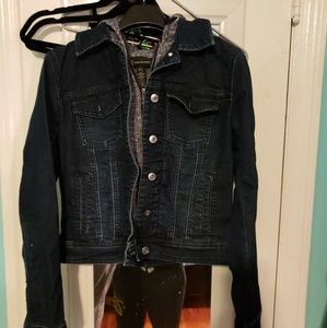 Jean jacket with hoodie.