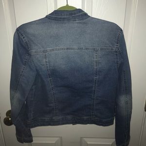 This jean jacket is cropped and fits pretty tight. Not worn on a regular and in a very good condition.
