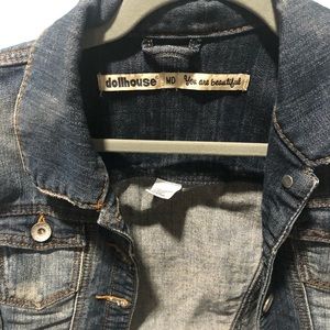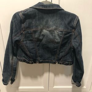 Crop jean jacket. Smoke free home. Hits right above waist line.