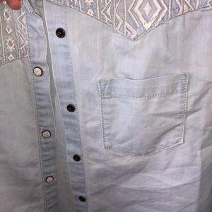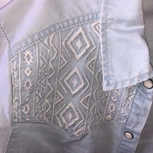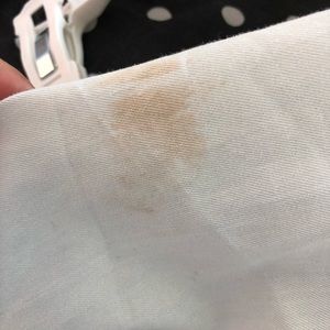 Small makeup stain on the back sleeve but not noticeable. Worn once. Stitching is in perfect condition