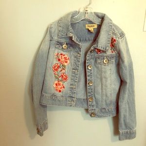 The jean jacket has cute flowers on the front like new