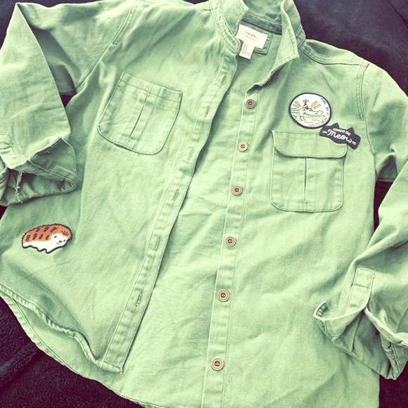 Green army Jean jacket / shirt - thickish worm once