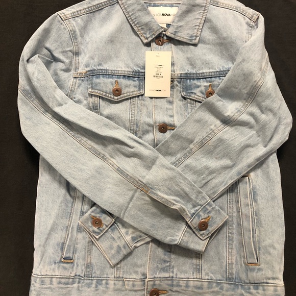 Fashion nova jean jacket very light color with tan outline light in weight great condition no flaws never worn