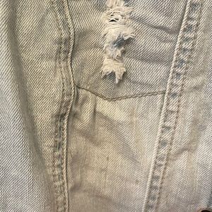 Fun jean jacket! Loved it just a little tight at my shoulders now. Small stain, see picture, can barely see it but want to be totally up front about all my clothes. :) perfect for concerts-can’t wait for those again.