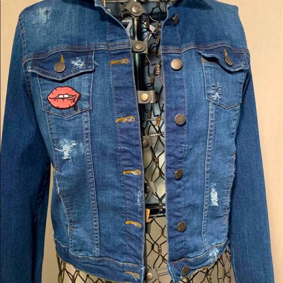 Distressed denim jacket size small!