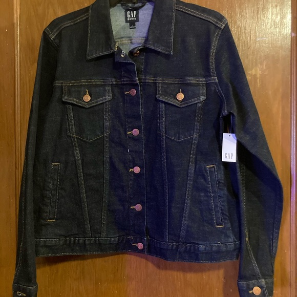 Dark blue denim jacket is always in style and can be paired with any out fit, dress up or down! Timeless piece:)
