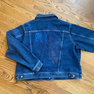This Venezia Jean jacket has a very faded American flag in the back. Size 22/24 about a L. Great condition.
