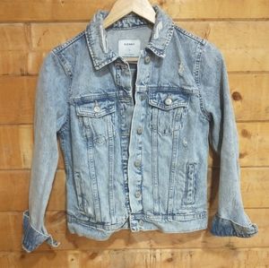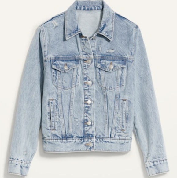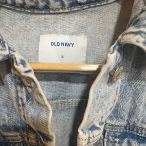 light wash jean jacket by old navy. says size small but was accidentally washed in hot water so now fits like and extra small. this was one of my favorites, unfortunately it no longer fits.