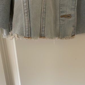 Wild fable jean jacket. Looser fit. Raw hem at the bottom. Hits right at top of hips. Never worn.