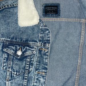 Jean jacket with furry lining on neck and hands. Brand new, with tags, never been worn. Streetwear society - size small.