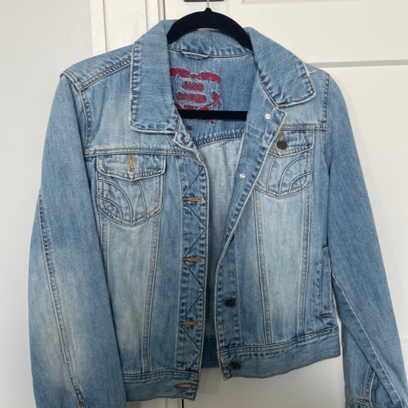 Washed out blue jean jacket. Great condition. Non-smoking non-pet home.