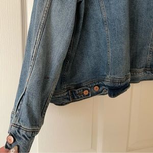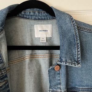 Old Navy jean jacket sz XXL. Worn maybe once but unfortunately this jacket runs small. Perfect for spring and transitional weather! Has stretch in it just not enough to fit me right. Comes from smoke free pet free home.