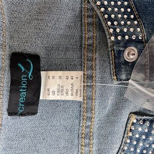 Creations denim jean jacket with rhinestones.