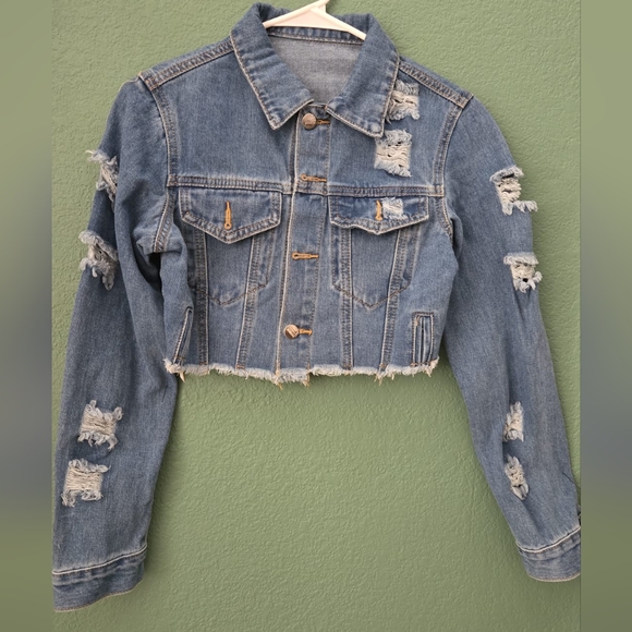 short ripped jean jacket