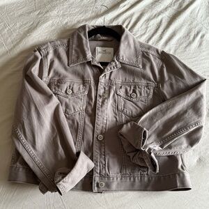 Light brown denim jacket cute for the fall. I lost a lot of weight and now it’s too big