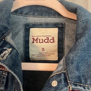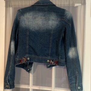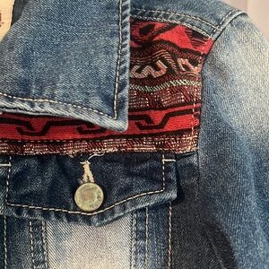 Jean jacket with cute pattern barely ever worn. True to size. Faded look but great quality material.