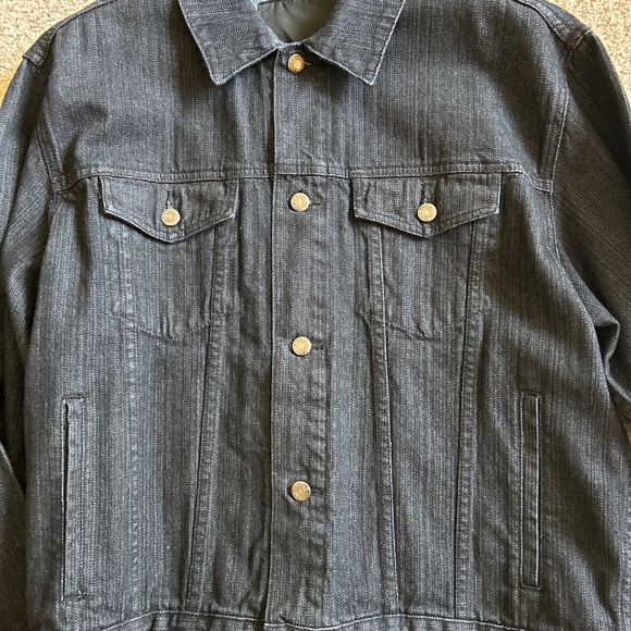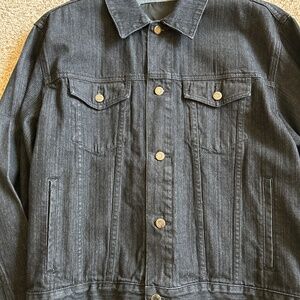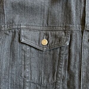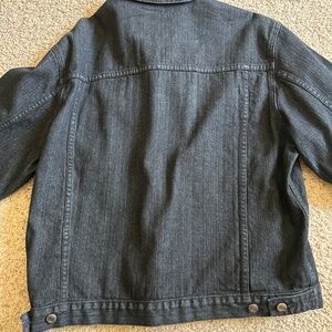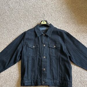 Dark blue Jean jacket. In great condition. The Jean is a little heavy so the jacket hangs great.