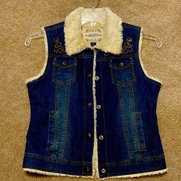 Children blue jeans jacket with fur detailing