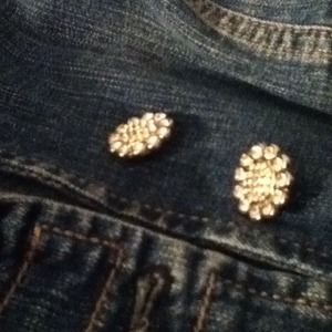 Jean jacket cardigan, with jeweled buttons that are perfectly in shape, worn once, brand new