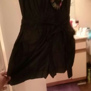 Navy blue, jean like short pants romper(new,never wear it) (I can add a scarf for $12 you want a different color ask) sell as it is...